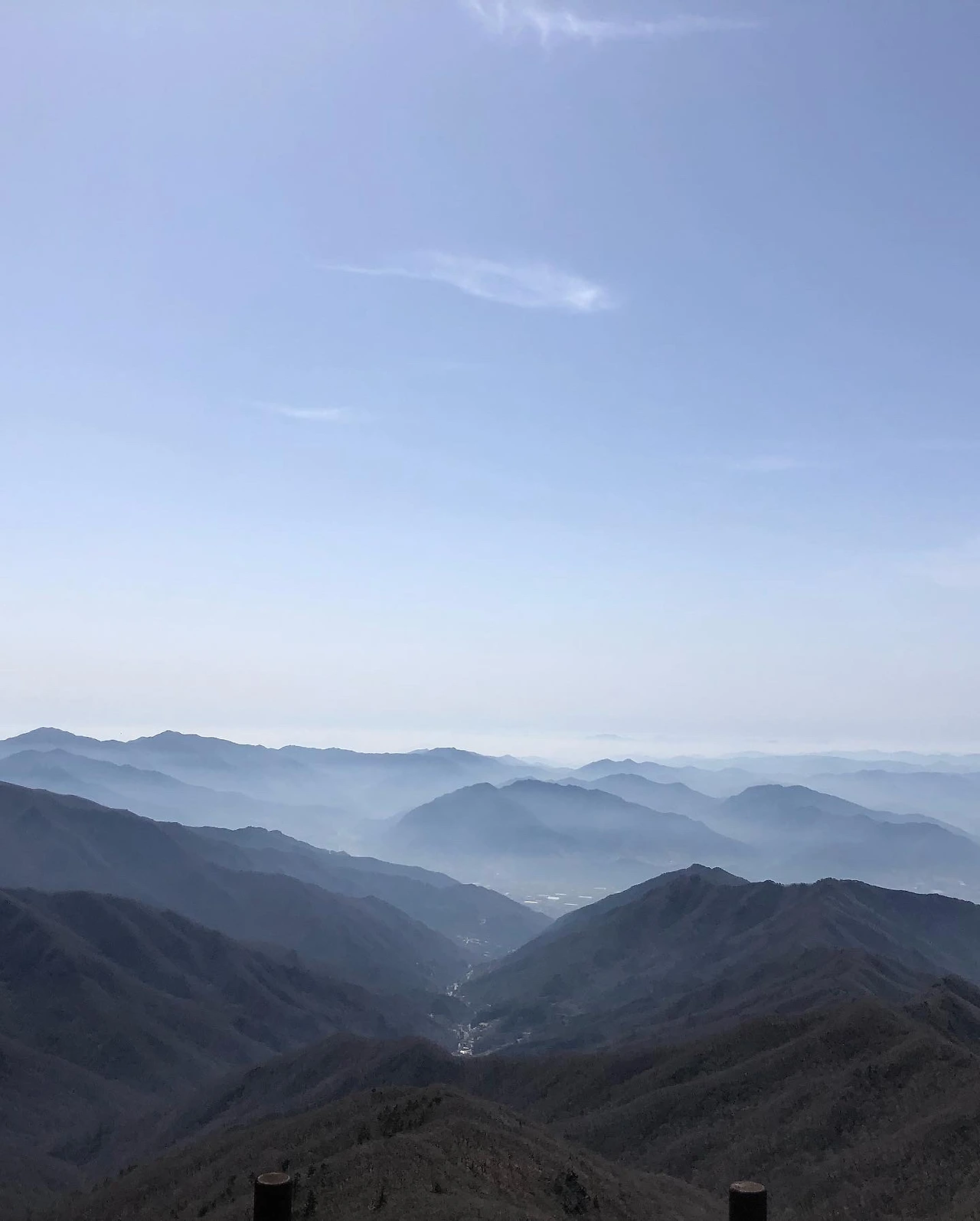 이내 산을 오르는데 아직은 조금 황량하지만, 푸릇푸릇함이 오기 전, 청명한 새소리와 계곡물 소리는 생명이 약동하는 봄이 왔다는 걸 느끼게 한다. 오랜만에 산에 오르니 꽤나 벅찼지만, 노고단에 올라 저멀리 지리산 반대편 끝까지 걸었던 그 당시의 내 모습도 떠올리고, 섬진강부터, 남부지방의 몇몇 산들을 보며 감탄을 한다. 역시 성삼재로 올라가는 것보단 힘들어도 아래에서부터 시작한 등산이 더 뿌듯함을 느끼게 해준다.