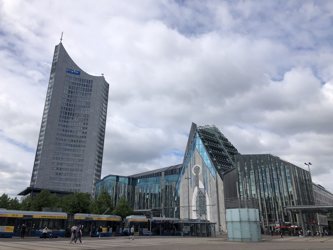라이프치히 대학 건물 중 하나는 교회 건물이기도 했는데, 구 동독 시절, 대학이 서방세계와 자유롭게 소통하는 것이 못마땅했던 정부가 이에 대한 조치로 건물을 폭파하기에 이른다. 역설적인 건 그 시점이 탈권위주의 운동이 세계를 휩쓸던 1968년. 자유진영에선 68혁명이 일어나는 와중에, 반대편에선 이에 대한 반동으로 더욱 폐쇄적인 움직임이 있었다는 것. 그렇게 두 세계의 간극은 더 넓어졌고 결국은 공산권은 붕괴할 수밖에 없었던 건 아니었을까 생각해봤다. 이 건물은 통일 이후, 여러 논의 끝에 현대적으로 다시 지어져 대학 건물로 사용되고 있다. 굴곡진 독일의 현대사를 단적으로 볼 수 있는 의미있는 건축물이랄까.