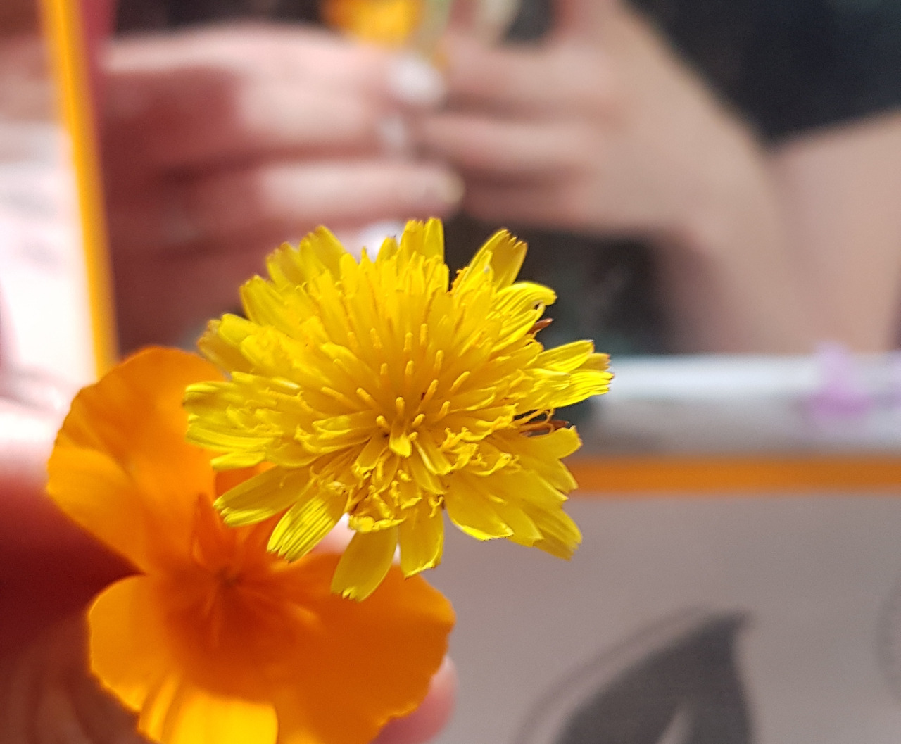 시골 가족들과의 모임에서는 시골 마당에 널린 여름 들꽃으로 직접 내 머리장식을 해봤다.