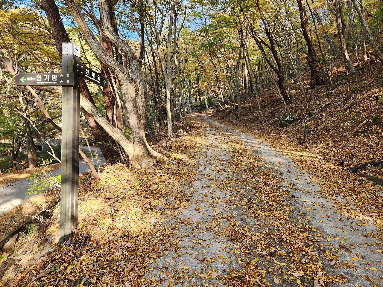 벌써 바삭바삭 마른 낙엽이 수북이 쌓인 지점도 있다.