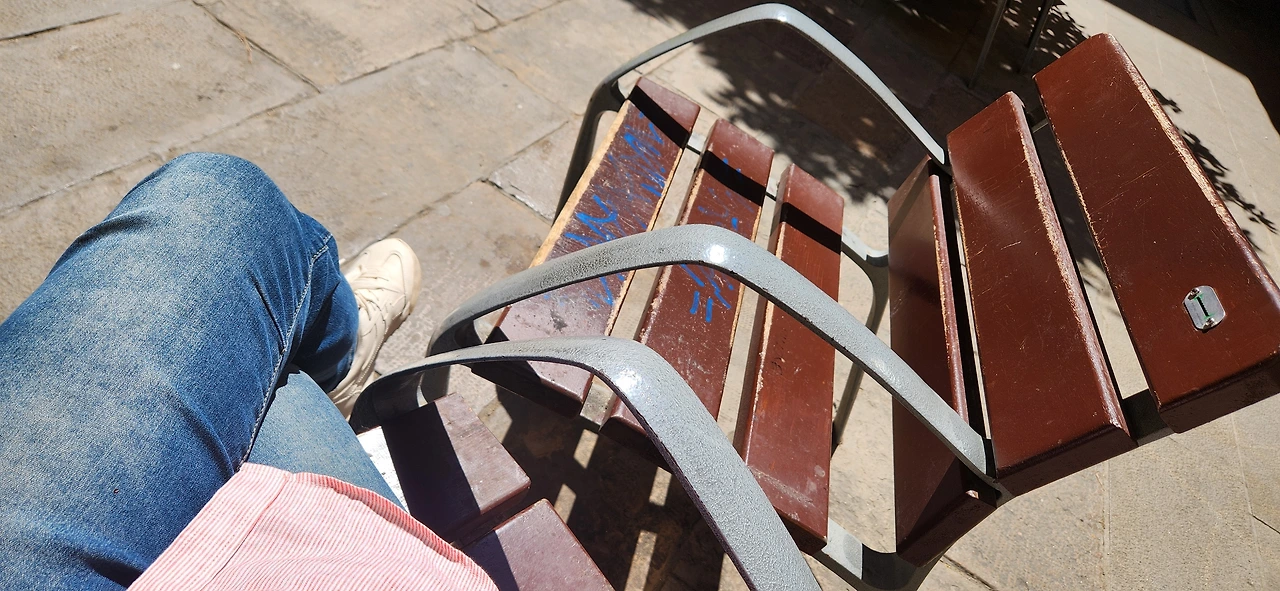 핸폰으로 이 글을 쓰는 사이 그늘이던 의자 위로 해가 많이 이동해 들어왔다. 무릎이 따뜻해서 좋다. 옆의자에 백인 젊은이가 앉아있다 머리를 길게 땋아 내린 흑인 아가씨가 앉아있다 여러 명이 앉았다 간다. 무릎을 좀 더 굽다가 나는 또 지도 없이 골목들을 어슬렁 거리련다.
