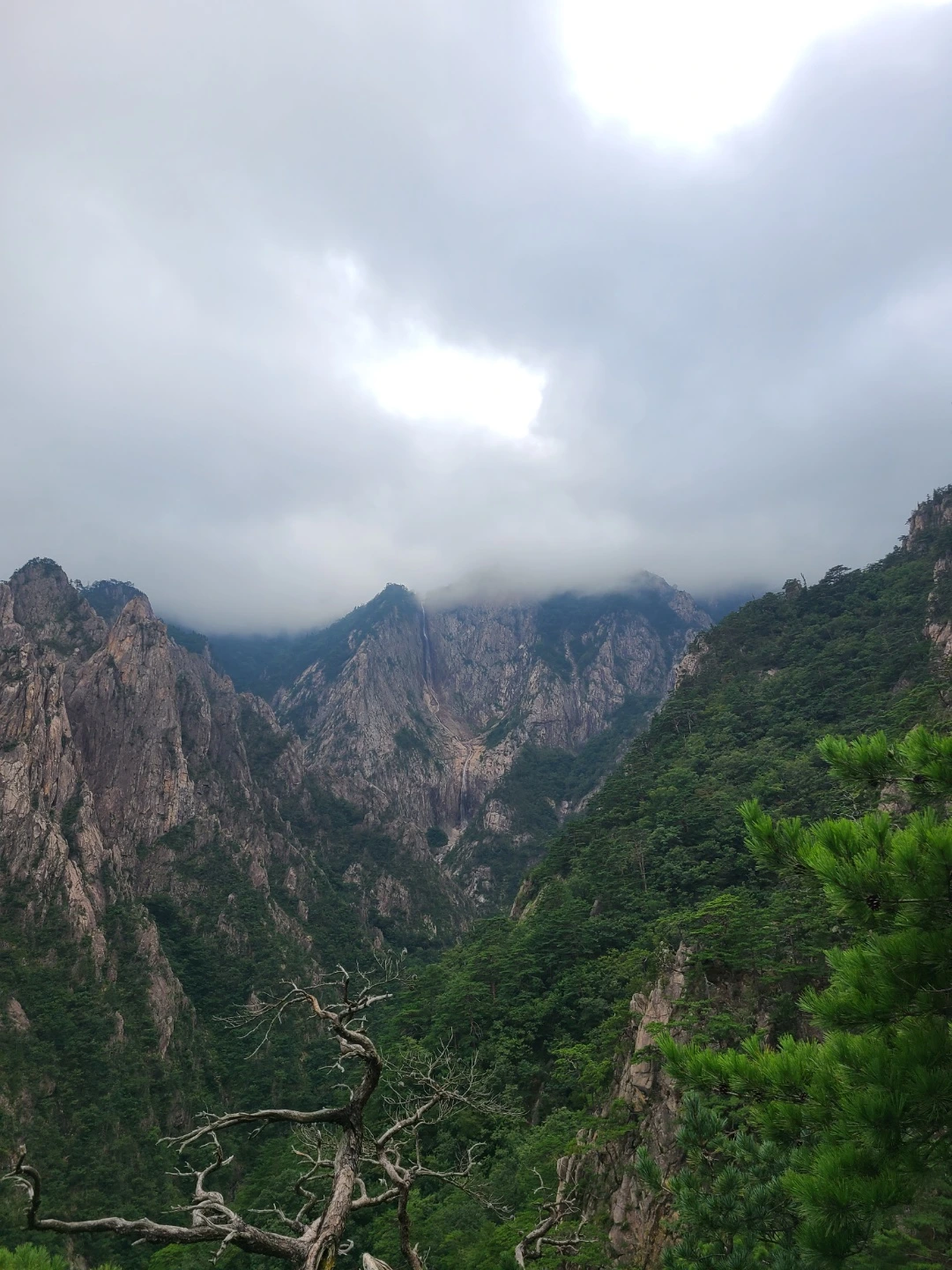 결국 끝까지 올라갔고 가서 본 산은 정말 절경이었다. 설악산을 왔구나 하는 것이 느껴지는….. 산수화에서나 보던 풍경들. 깎아지른 절벽 산들.