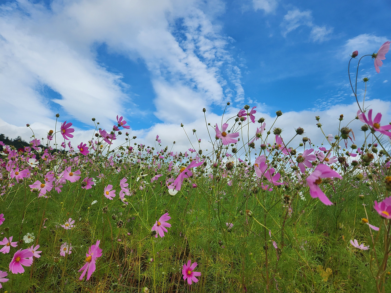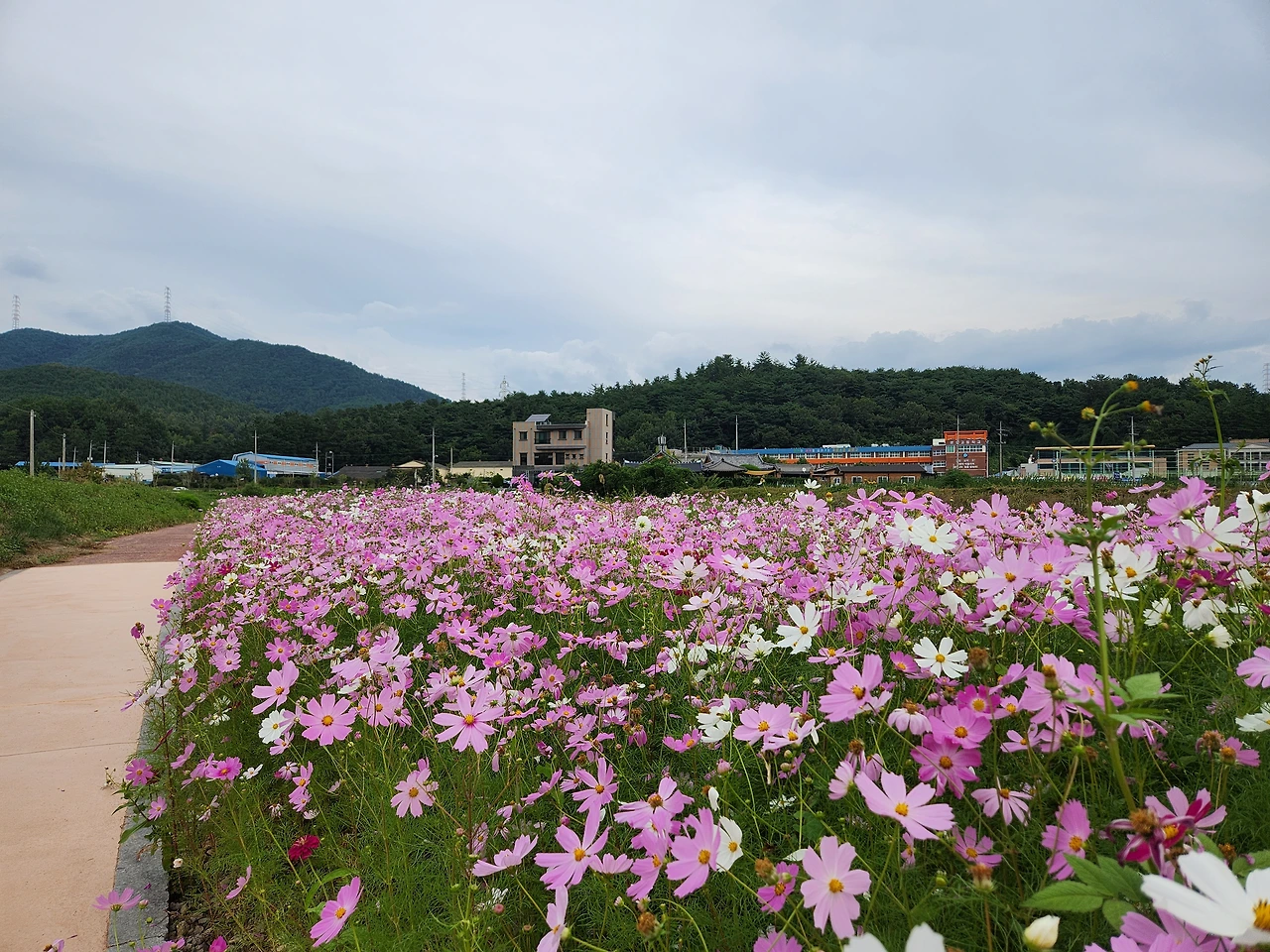 창을 내다보니 개천 둑에 무리로 피어있던 코스모스가 이제 많이 희미해졌다.