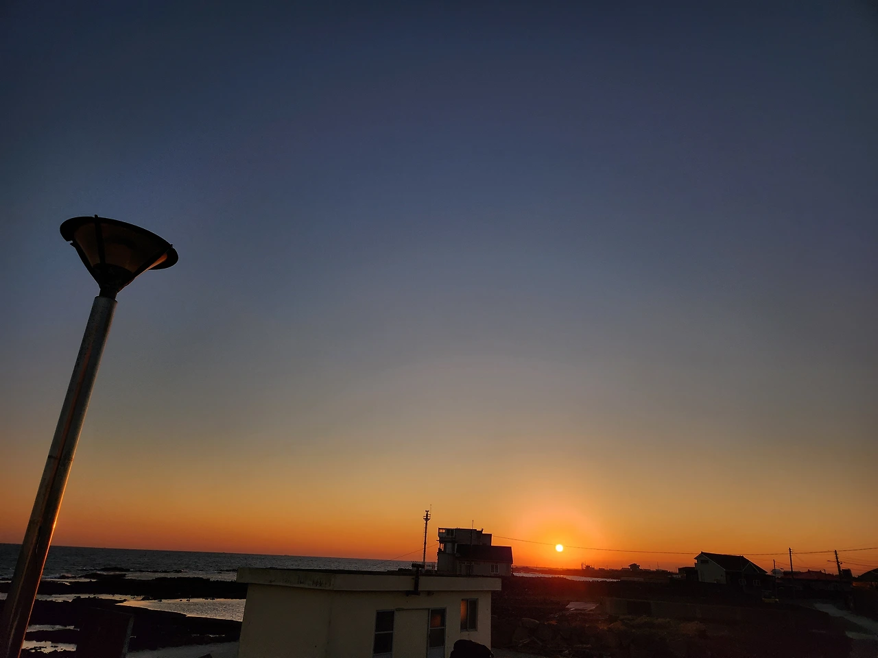 결국 완전히 펼쳐진 바다를 보기 전에 이미 떠 올라 있는 붉은 해가 보인다. 바다에서부터 서서히 떠오르는 해가 아니어서 아쉽기는 했지만 충분하다.
