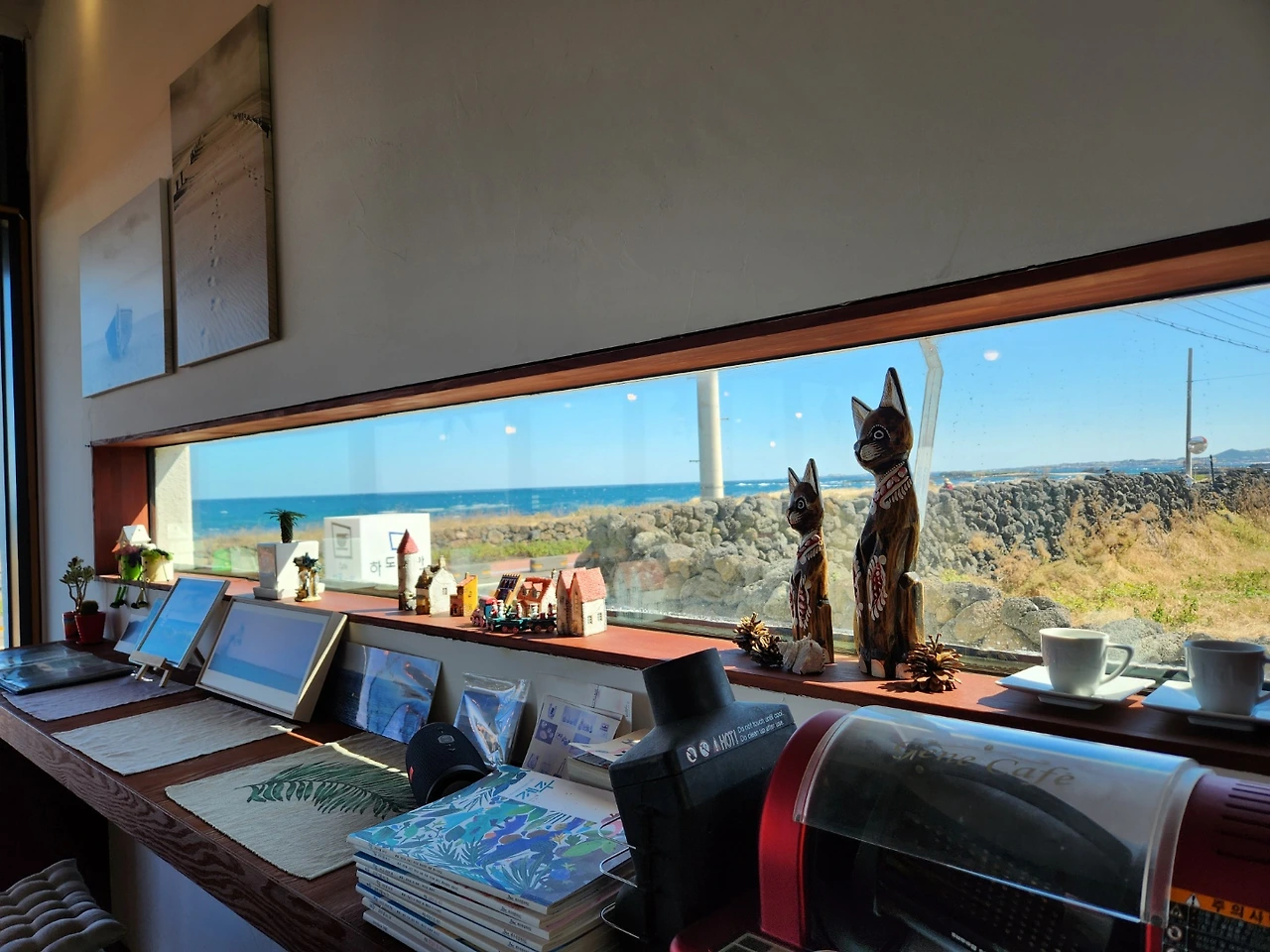 종달리를 향해 가던 길가의 카페. 고양이랑 같이 커피를 마신다.