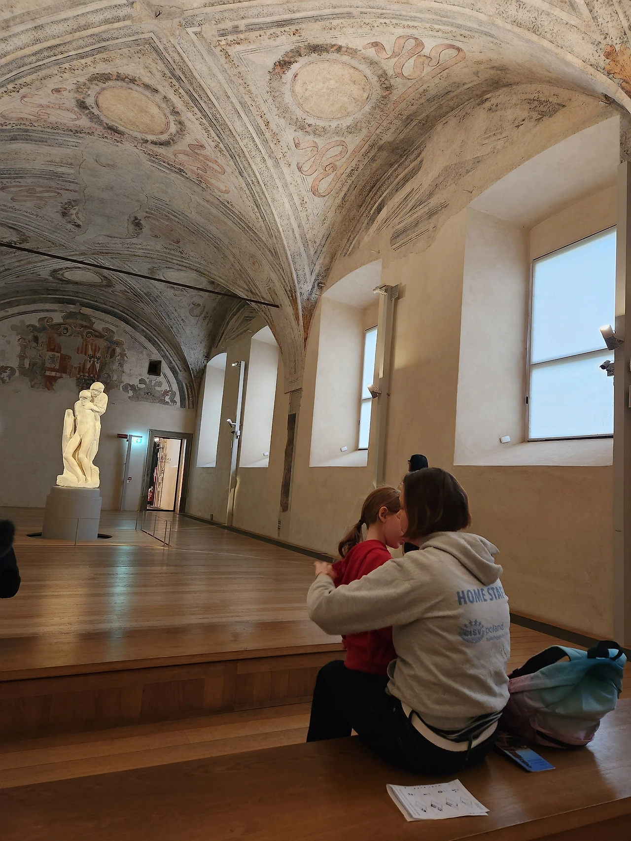 피에타 상 앞에 앉아있던 어떤 엄마가 딸을 지극히 사랑스러운 눈빛으로 바라보며 안고 계속 입 맞춘다.