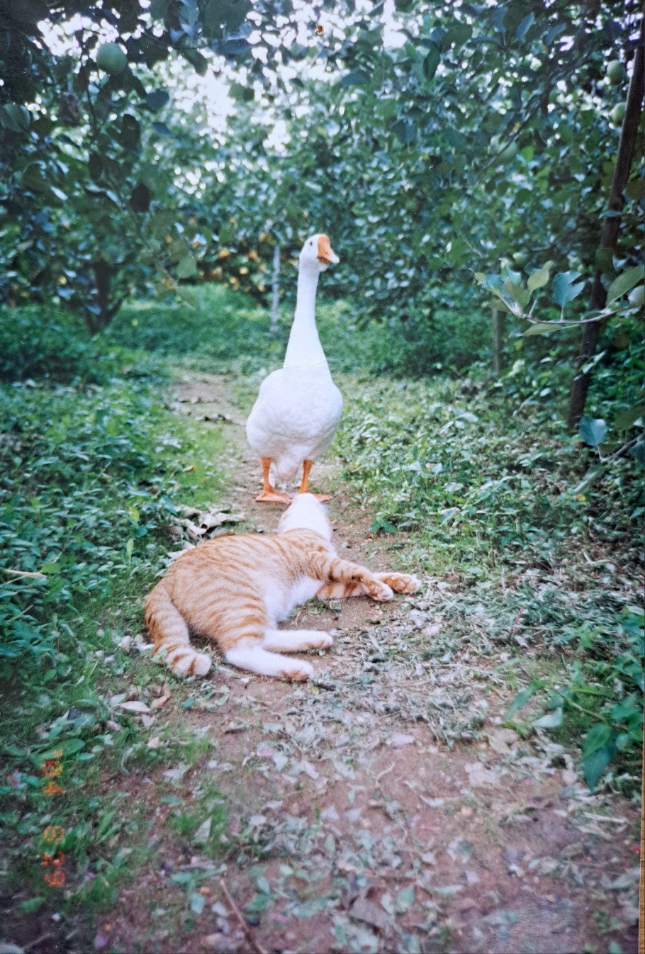 (오래전 과수원에서 키우던 거위와 고양이 '장이')