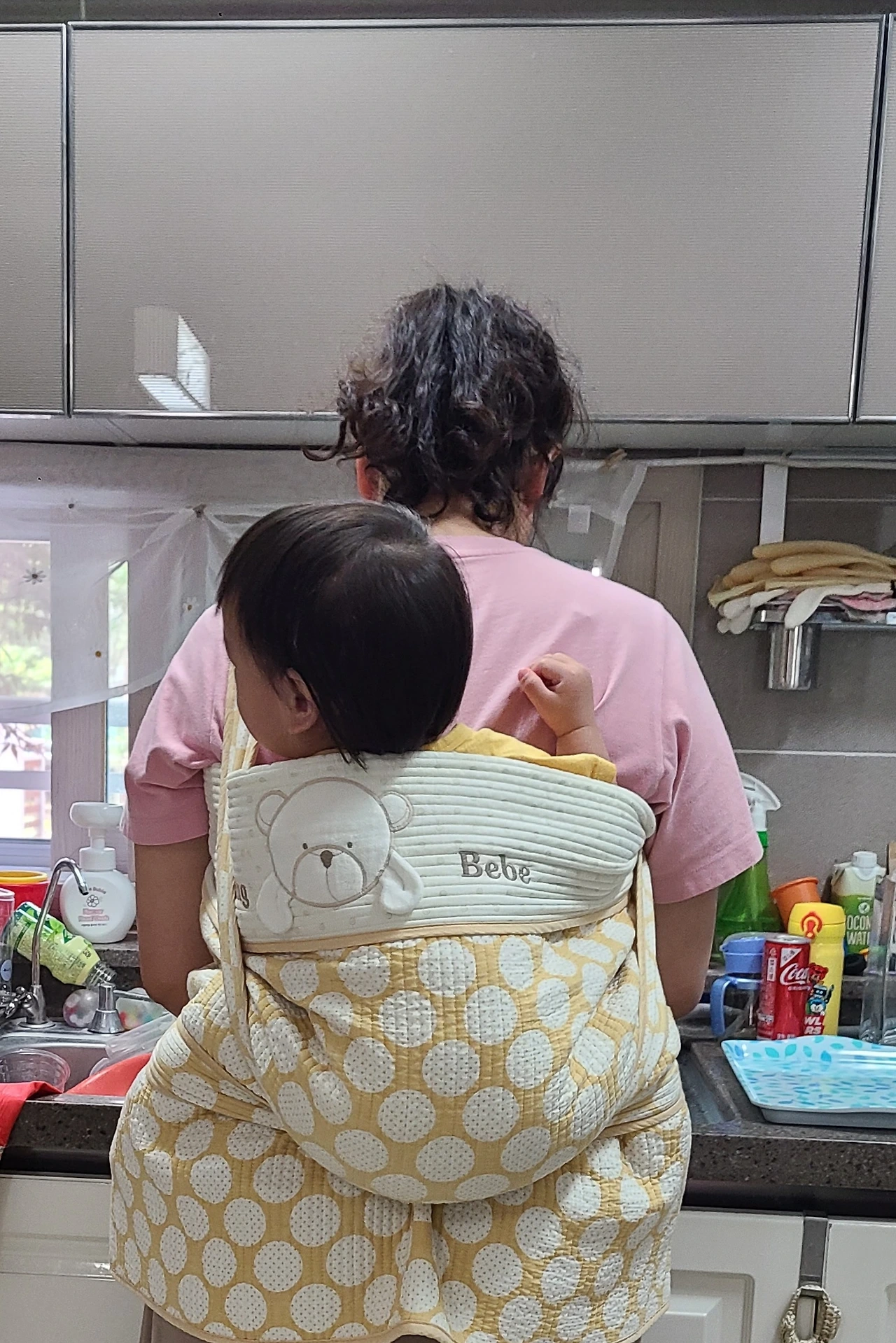 세 번째는 어제 입었던 옷을 오늘도 입었던 옷을 입고 있는 사람이다. 이 세 가지를 모두 만족한다면 나는 자신 있게 말할 수 있다. 그 사람은 백 퍼센트 애 엄마라고!