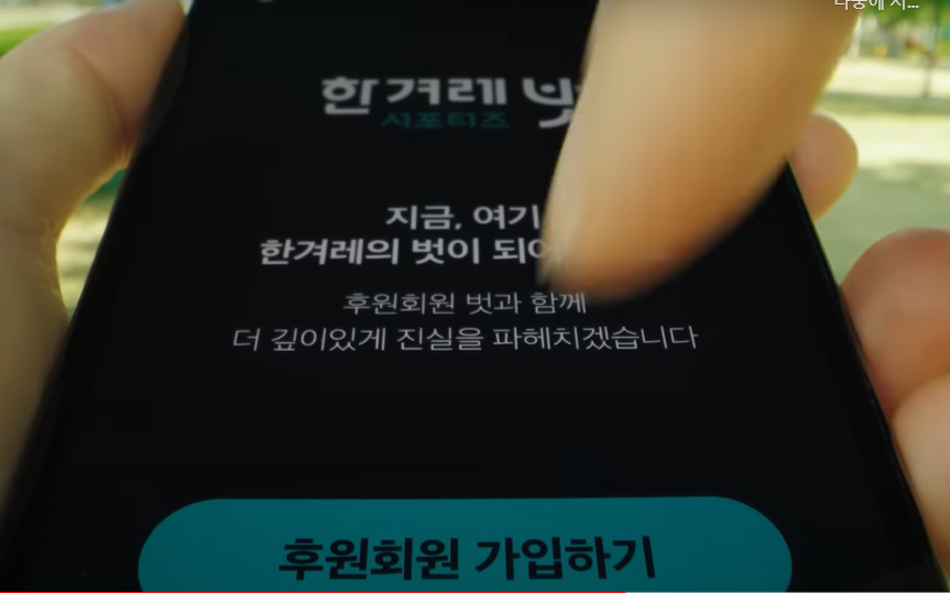 신문 돗자리에는 한겨레 정기후원을 위한 QR코드가 하단에 함께 삽입되어 자연스럽게 후원까지 이어질 수 있도록 유도하고 있습니다.