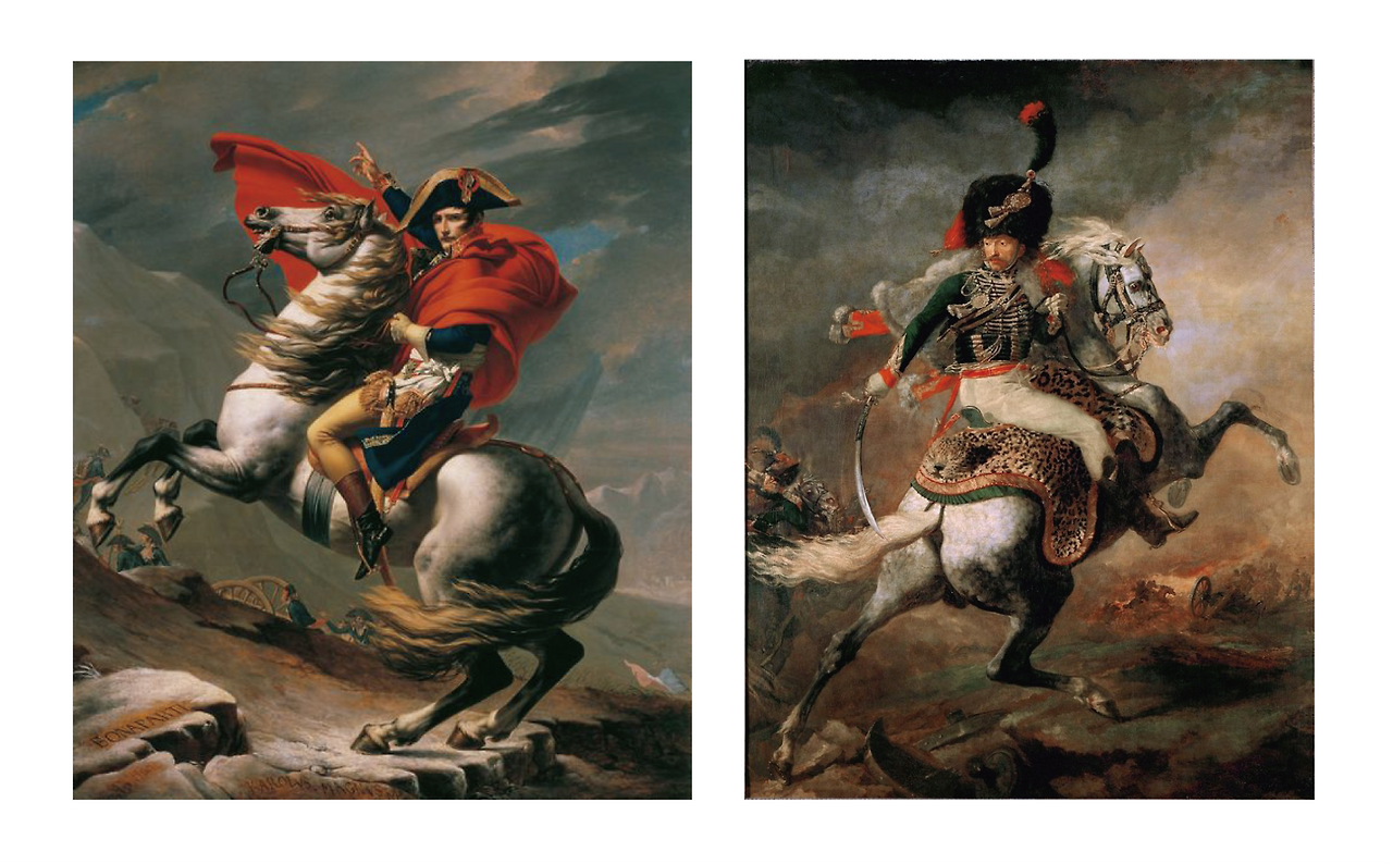 제리코의 '돌격하는 샤 쇠르'와 다비드의 '알프스를 넘는 나폴레옹'은 둘 다 말을 타고 있는 사람을 주제로 하고 있다.