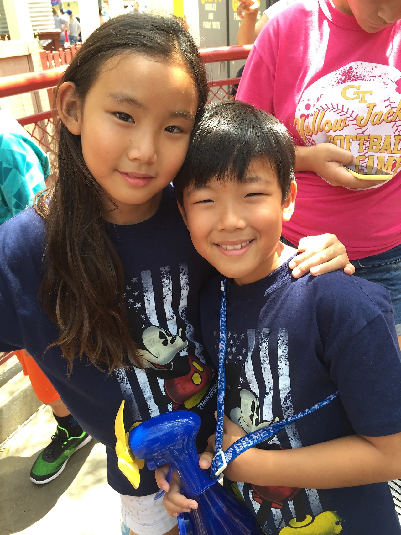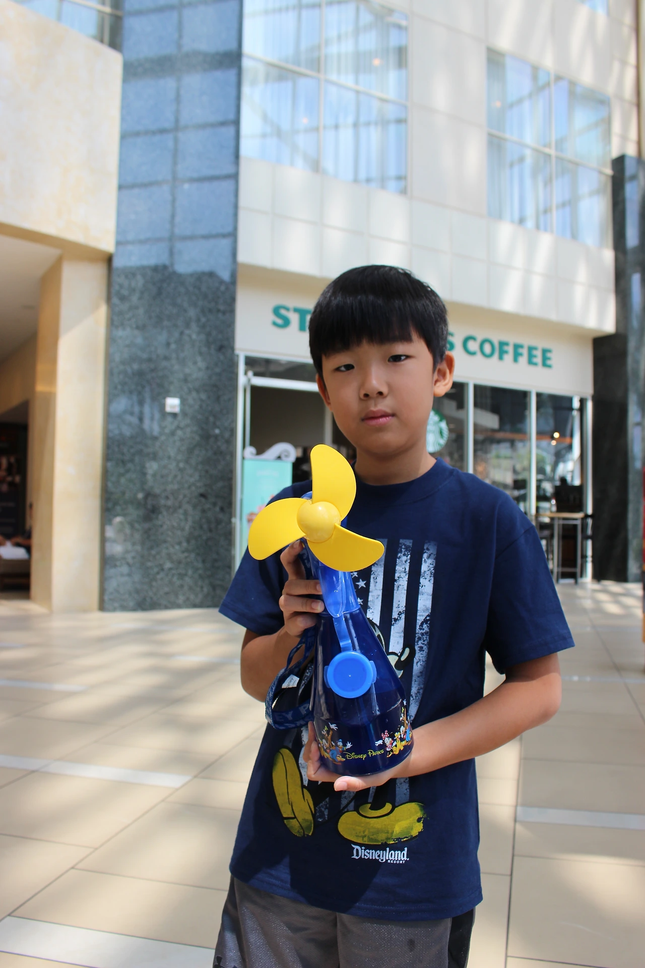우리가 지냈던 하얏트 호텔. 아들이 들고 있는 분무기 선풍기는 폭염속 디즈니랜드에서 필수품이었다.