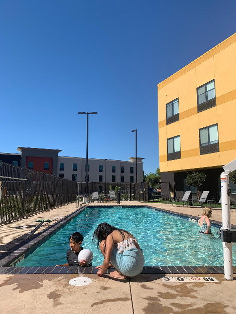 일정 대로라면 아침 먹고 일찍 출발하기로 했었지만, 우린 수영장에서 몇 시간 놀고 가기로 맘을 바꿨다.