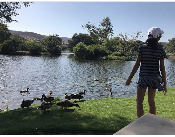 잔잔하게 반짝이는 호수 위에는 귀여운 오리들이 동동 떠다니고,