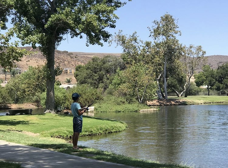 낚시를 내내 벼르고 있었던 아들을 위해, 호숫가 낚시터에서 작은 낚싯대를 하나 사고, 낚시 펄밋도 끊었다.