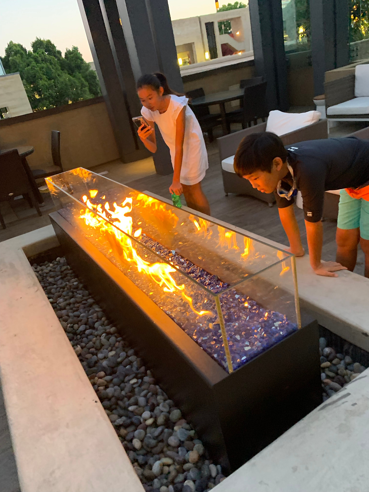 한산한 풀장에 내려가 별을 보며 수영도 하고, 활활 타오르는 모닥불을 쬐기도 했다.