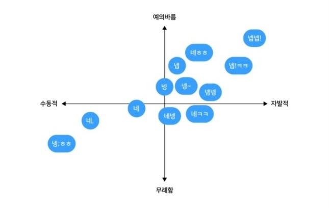 이메일마저도 느려진 요즘, 코로나 시대를 지나며 슬랙 같은 오피스 챗도 활성화되었지만 예전부터 사내 메신저도 많이 쓰고 있다. 주로 지시나 요청을 받은 “아랫사람들” 또는 동료라 하더라도 뭔가 헤게모니가 약한 쪽에서는 대답을 주로 하게 되는데, 가장 간단한 대답인 ”네“가 변주되기 시작한 것. 하이 콘텍스트 사회인 우리나라답게 상냥하게 맥이는 버전과 대놓고 맥이는 버전, 감정 없음 버전 등 여러 가지로 발전했다.
