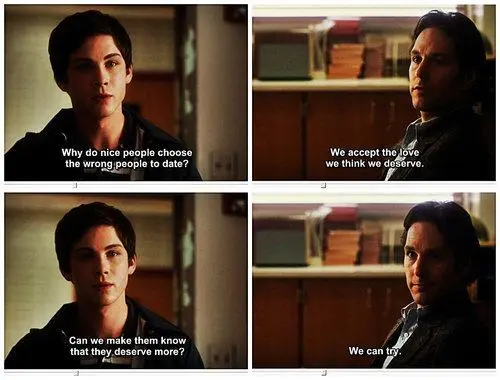 *왜 사람들은 자기를 함부로 대하는 사람을 사랑하게 되는 걸까요? 사람은 자기가 생각한 만큼만 사랑받기 마련이거든. "we accept the love we think we deserve"