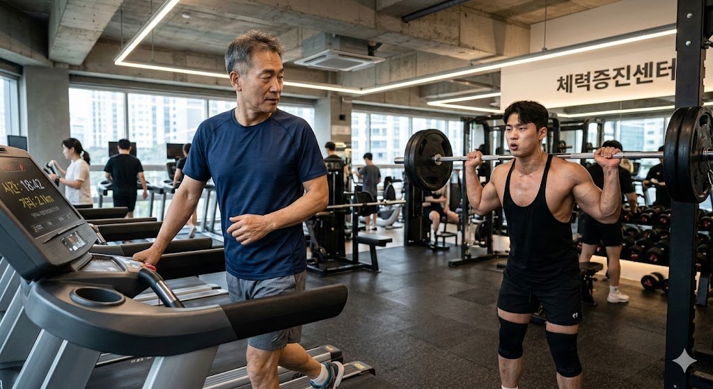 러닝머신 위에서 숨을 고르다 문득 옆을 보았다.