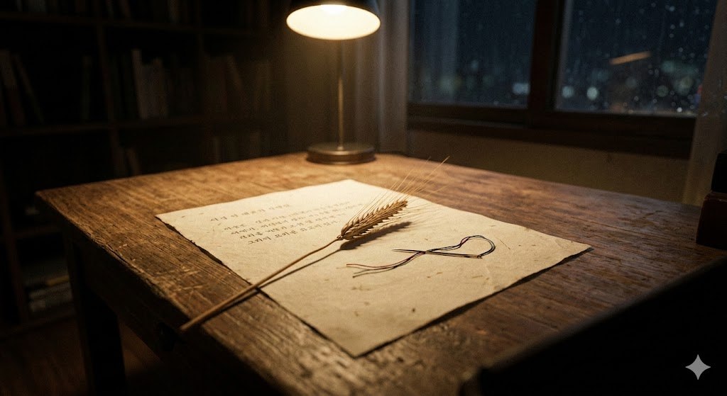 나는 이제 그 단어들을 실 삼아 종이 위에 수를 놓는다. 화려한 웅변가나 사상가의 문장이 아니라, 떨리는 손끝으로 제 마음 하나 겨우 옮겨 적는 하수의 자수다. 비록 보릿대궁으로 불어넣은 고독이 금방이라도 터질 듯 위태롭지만, 이 서툰 기록만이 내가 잃어버린 '인간의 언어'를 되찾는 유일한 통로임을 안다. 사람들의 가슴은 본래 다 그러한 법이다. 두꺼운 이념의 벽 뒤에 숨어 누군가 먼저 손을 내밀어주길, 이 가짜 언어의 전쟁이 끝나기를 기다리고 있을 뿐이다. 나는 오늘 밤도 그 기다림의 언저리에 앉아, 누군가의 상처 입은 가슴에 가닿을 실 한 오라기를 정성껏 꿰어본다.