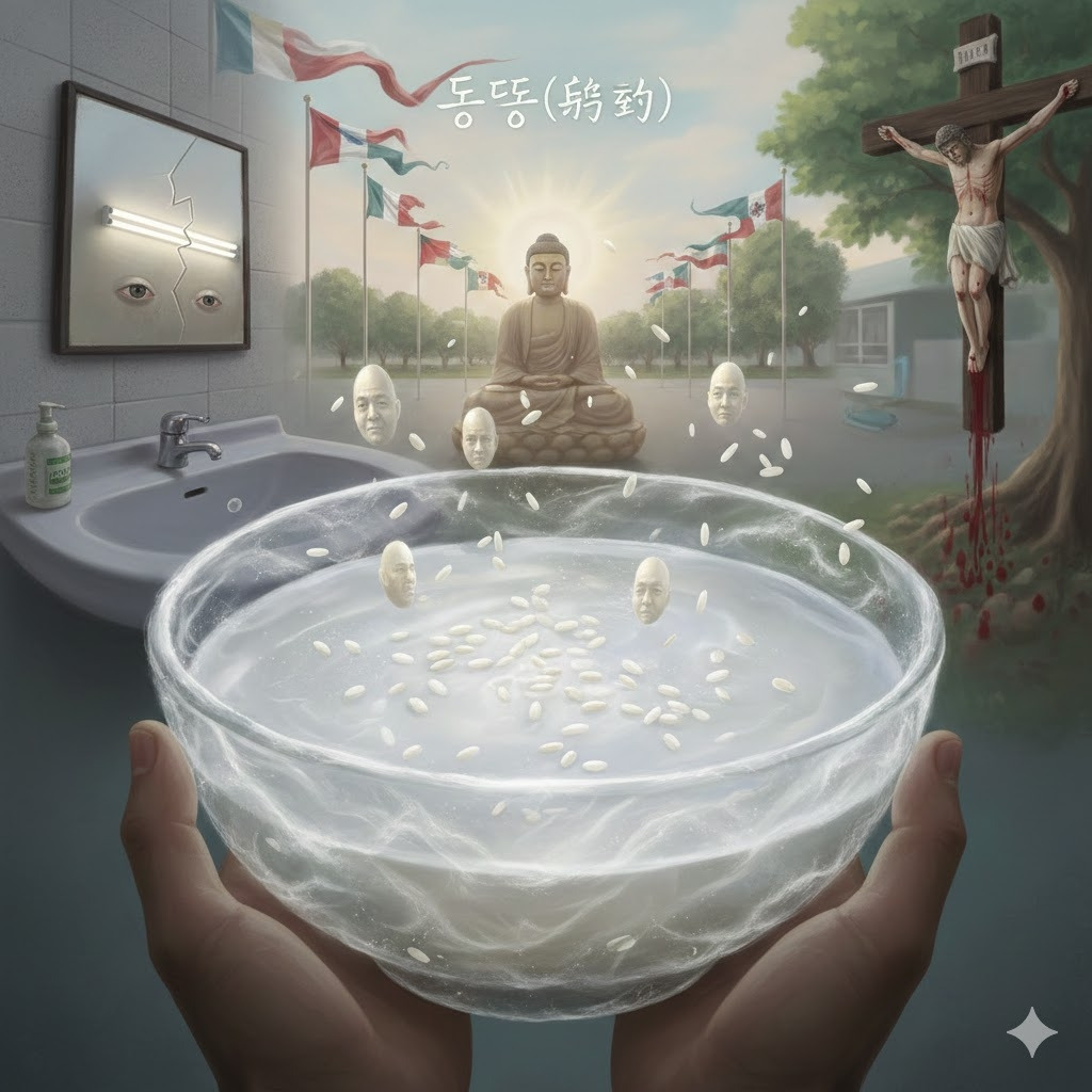 당신은 사발 속 동동주를 흔들었다.