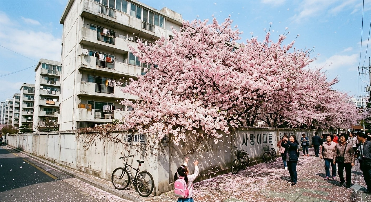 아파트 옹벽 사이, 마침표처럼 박혀 있던 백색의 기척들이