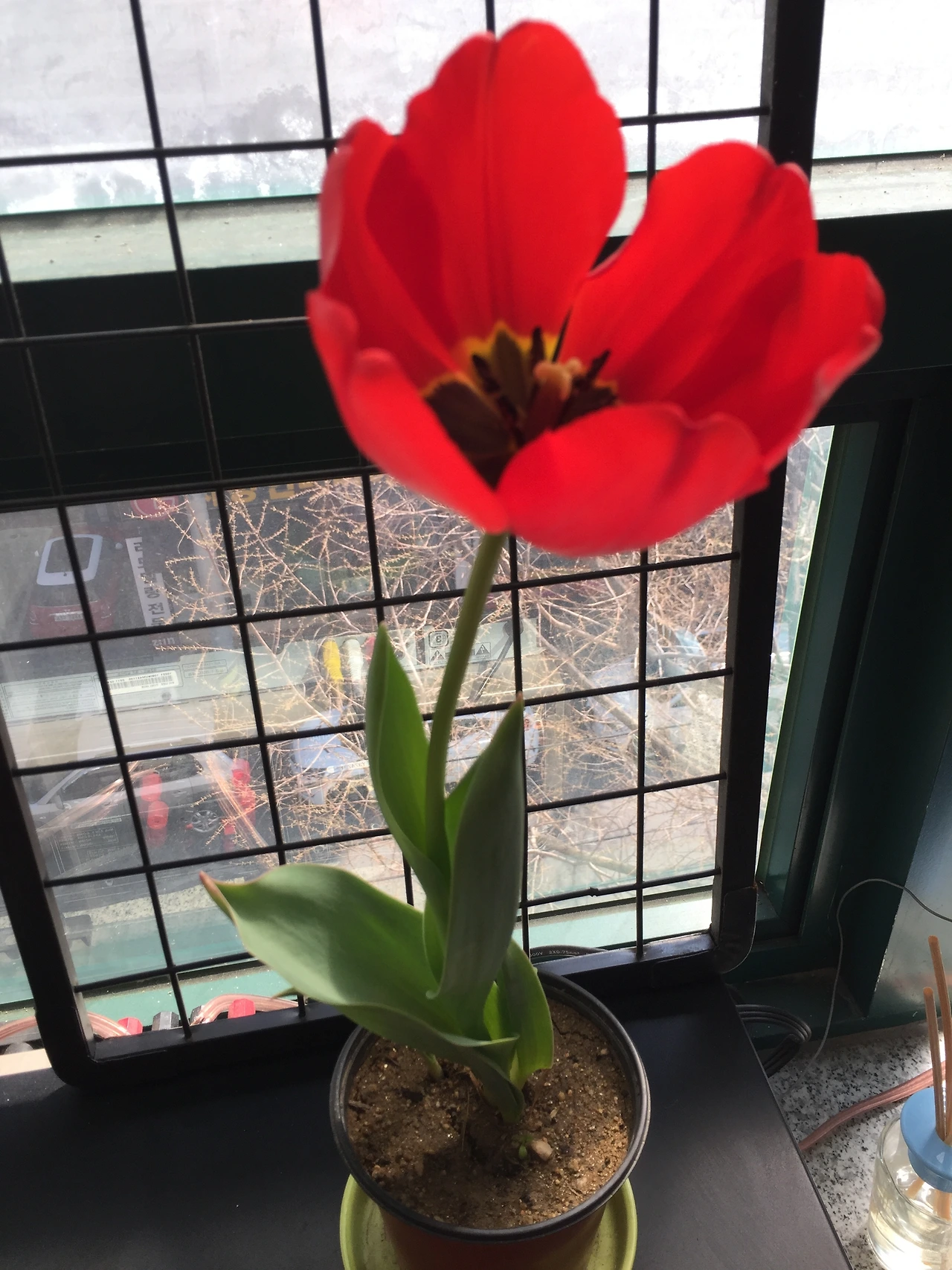 그런데 그제 차를 마시며 창가로 다가가다 우연히 힐끗 본 튤립에 멈칫했다.