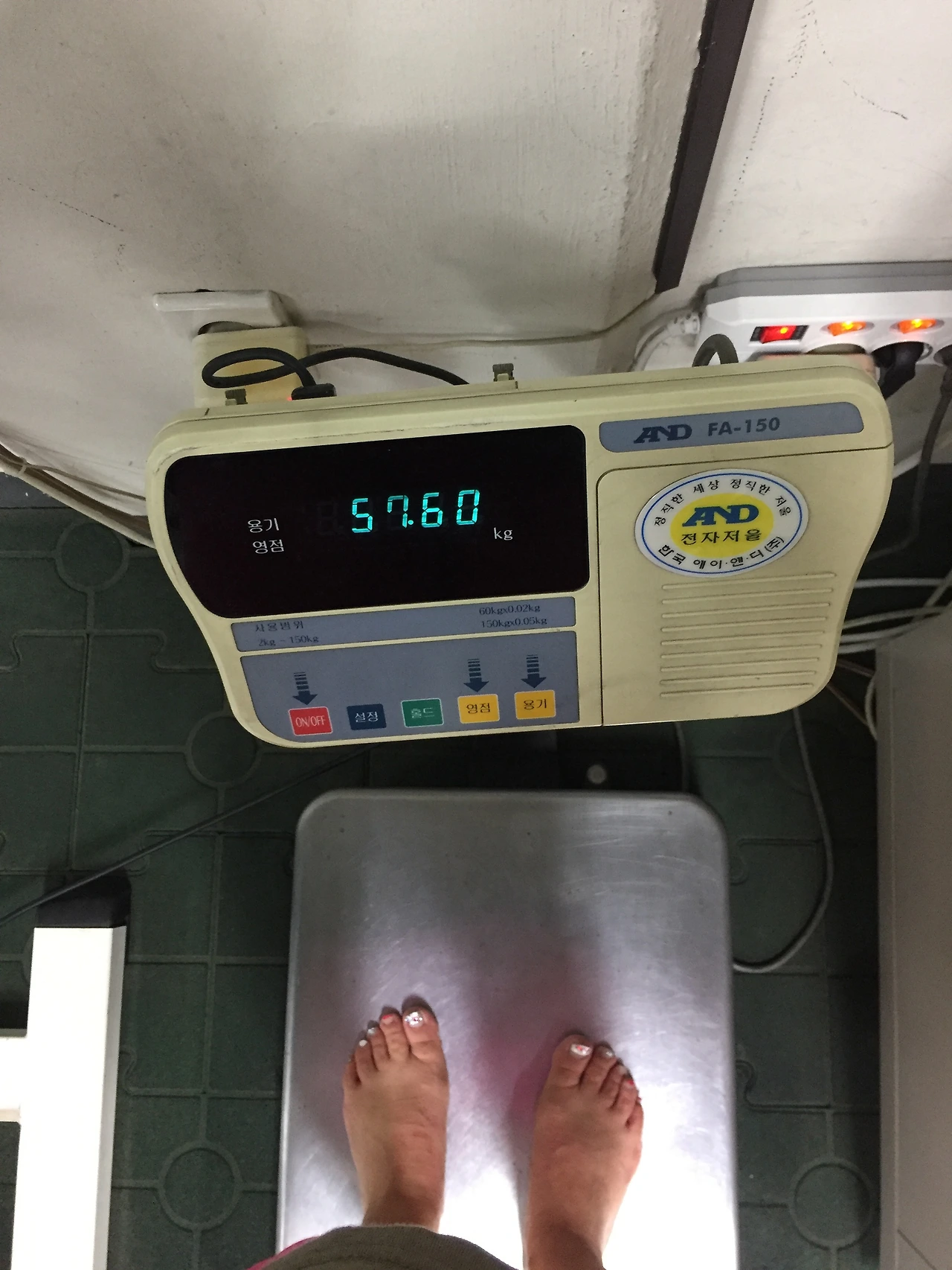 아마 위의 사진은 운동한 지 1~3주일 뒤쯤 되는 사진이고 처음에 몸무게를 재진 않았지만 61-2kg쯤에서부터 운동했던 기억이 난다.