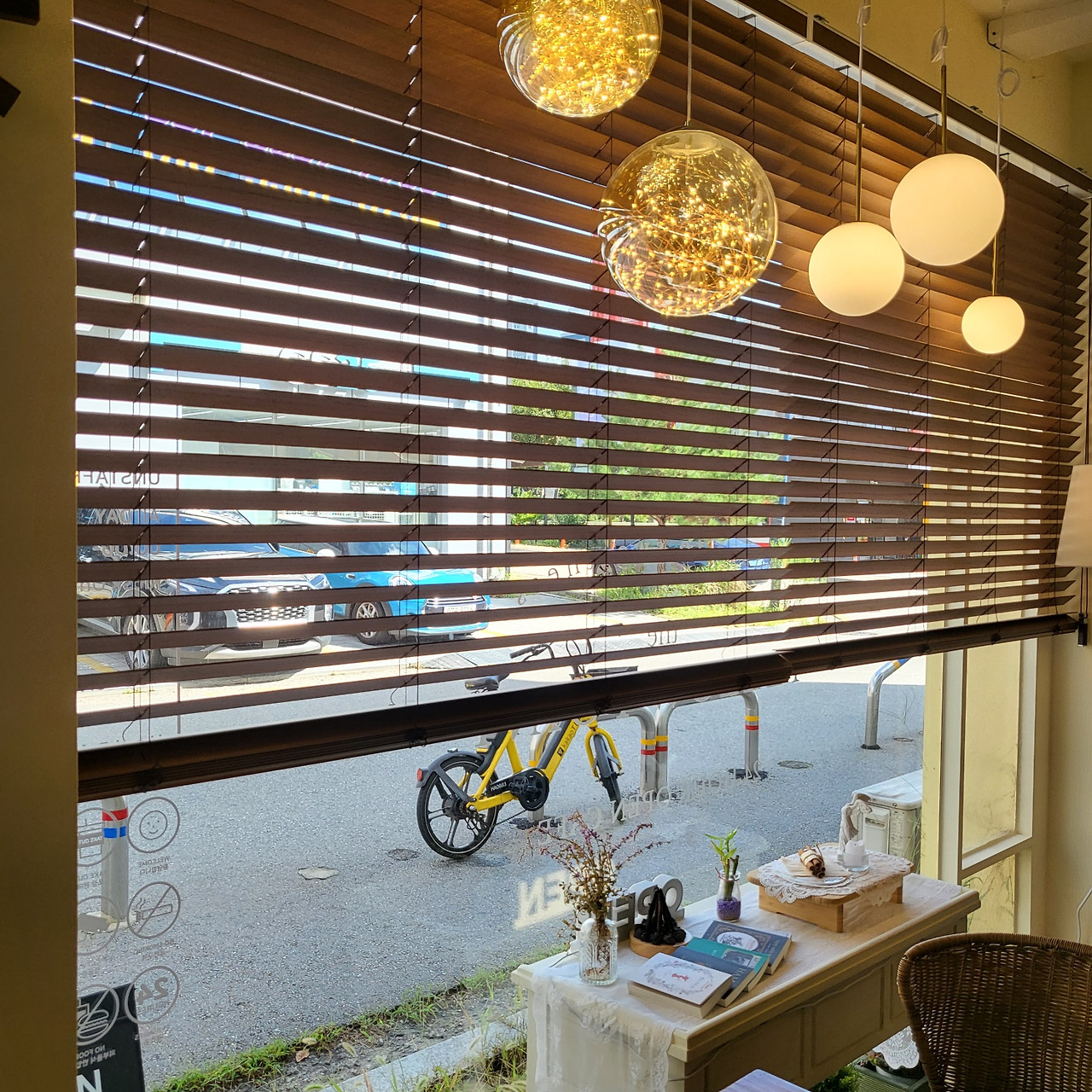조명가게 사장님이 떠난 자리를 고스란히 이어받아, 카페를 오픈했네요. 조명가게의 노란색 인테리어가 너무 고급지고 세련되어 카페 사장님은 노란색 인테리어를 그대로 살리고 조명 몇 개만 추가해서 달아놨다고 해요. 개인적으로 이런 인테리어 너무 좋아해요. 특히, wood!!! 저 고급진 도어는 취향저격입니다. 거기다, 평일 오전 11시까지 아메리카노 1500원...