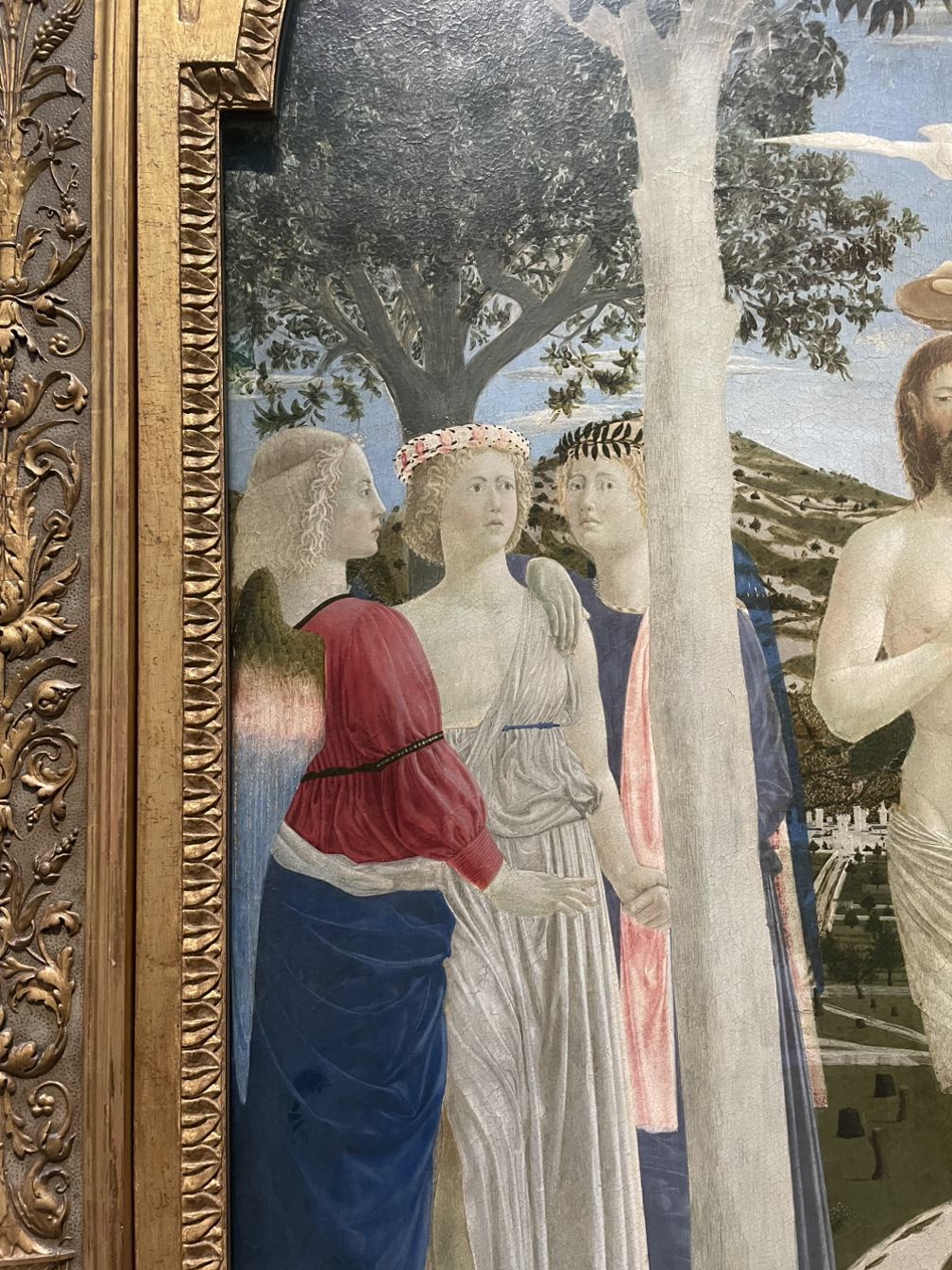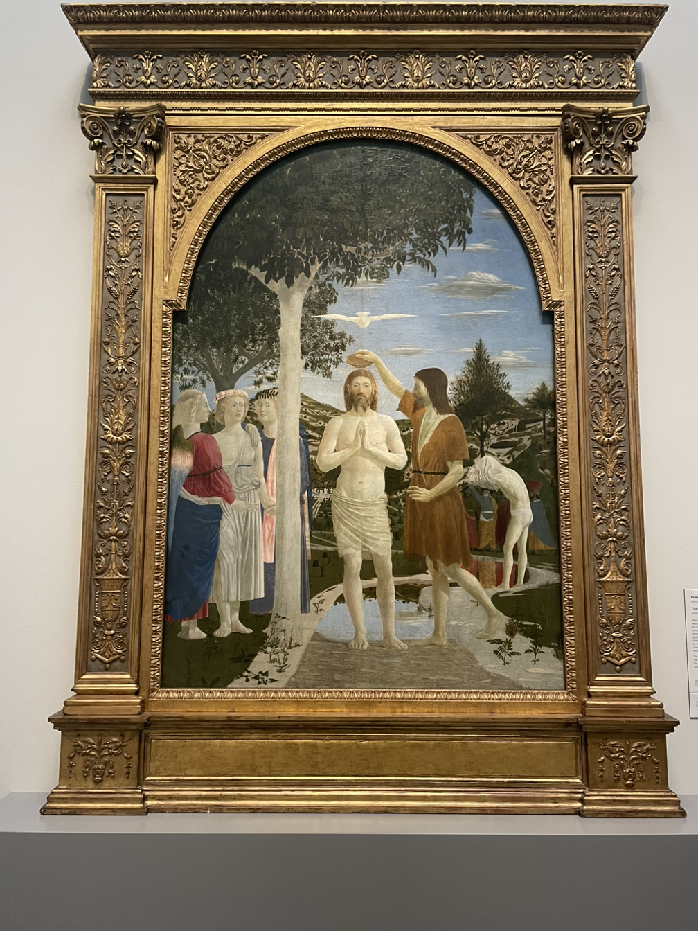 아직 사람들이 거의 없을 때 그림들과 독대하는 희열을 내일로 지연하기로 하고 어두운 방을 나선다. 여기서 머뭇거리기에 내 욕망이 약속한 그림이 이 건물 안에 너무 많아 마음이 조급하다. 늘 조감도와 지도를 원하는, 그러나 그 욕망을 충족하기에 불충분한 지성만 갖춘 나는 아직 모든 그림들의 자리를 알지 못한다. 다 빈치를 (잠시) 등 뒤에 두고 앞으로 걸어 나간다. 얀 반 에이크 말고도 이 미술관이 갖고 있었던, 나는 미처 알지도 못했던 북유럽 화가들의 흥미진진한 페이지들을 넘기기 위해. 나만의 추억을 자극하는 ‘산 에우스타키오의 환시’에서 작은 도판이 미처 전하지 않던 환상 앞에 걸음을 멈추기 위해. 그다음에는 피렌체 밖 중부 이탈리아의 제단화들을 보기 위해, 만테냐와 벨리니의 겟세마네 동산이 마침내 팔뚝을 맞대고 걸린 모습을 확인하기 위해. 기껏해야 아름다운 성모나 그리던 벨리니의 어마어마한 분홍빛 여명에 눈부시기 위해. 마침내 꿈에 그리던 피에로 델라 프란체스카의 ‘예수 그리스도 세례’ 앞에 다다르기 위해. 예수 발밑으로 하늘보다 더 순수하게 하늘색으로 반사되는 물 위의 정경과 예수 머리통 위로 너무나 적절한 높이에 위치한 비둘기를 한참 바라보기 위해. 그 옆에 선 천사 중에는 이상할 것도 없이 관람객을 응시하는 시선이 있음을 확인하고 그와 눈 맞추기 위해. 내셔널 갤러리 유튜브 채널에서 복원 과정을 설명하던, 만나면 인사하고 말 것 같이 내게만 친근한 복원사 덕분에 더욱 친밀함과 애정을 갖게 된 ‘그리스도 탄생’ 앞에서 한참 흐뭇한 미소를 짓기 위해. 그리고 그 뒤로 보이는 척박한 언덕의 지형과 지질을 살피며 이제 차례가 됐다고, 다음에는 산세폴크로에 가서 그림 속 같은 고장인지 봐야겠다고, 그리고 거기 있을 피에로 델라 프란체스카의 ‘부활’을 봐야겠다고 받아들이기 위해.