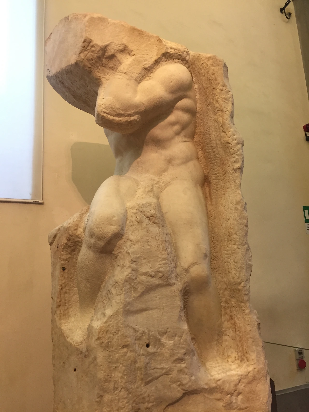 그런 다음에야 겨우 다비드가 생각났다. 피렌체 아카데미아에 채광이 드는 유리 천장 아래 우뚝 선 이 잘생긴 남자애는 정수리에 심지를 꽂고 글 쓰는 내 쪽을 지금도 바라보고 있다. 역시 인상을 좀 찡그린 채다. 두상으로 요약한 초는 이 유명한 소년의 형상을 일반인들이 소유 가능한 형태로 재현한 수십 가지 방식 중 하나일 뿐이다. 그 유명한 손과 돌과 어깻죽지의 가죽끈을 360도 빙 둘러 그토록 가까이서 볼 수 있었다는 경험 자체가 무척 신선했다. 그러자 그를 향하는 길 양쪽에 있던 역시 미완인 노예 연작의 이미지가 자연스럽게 뒤따른다. 이 역시 완성된 현대 조각을 보는 느낌을 주는 정말 근사한 작품이다. 과장되지 않으면서도 뛰어난 표현력이 미켈란젤로에게는 있다(과장되고 뛰어난 쪽으로 로댕이 떠오른다).
