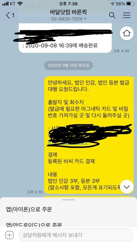 이 당시 유행했던 개인 비서 서비스 스타트업이었는데, 여기를 통해 법인 인감 발급 업무를 심부름으로 시켜 처리할 수 있었다. 문비서 앱 또는 카카오톡 문비서 친구 계정을 통해 오더를 넣으면 퀵 기사님이 내 위치로 방문하셔서 서류 발급에 필요한 RFID 카드 또는 USB를 챙겨 가셔서 등기소에서 발급을 한 뒤 다시 가져오는 방식이었다.