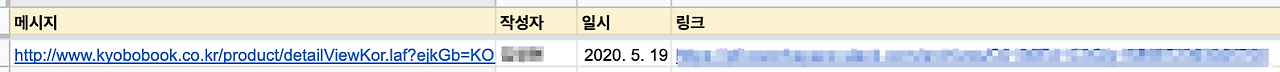 3. '슬랙 메시지 log'와 '온라인 교보문고'의 정보를 참고하여 '신청목록' 자동완성