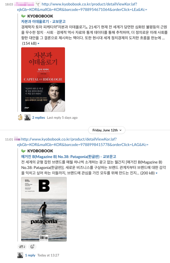 2. 해당 페이지 url을 슬랙 채널에 입력