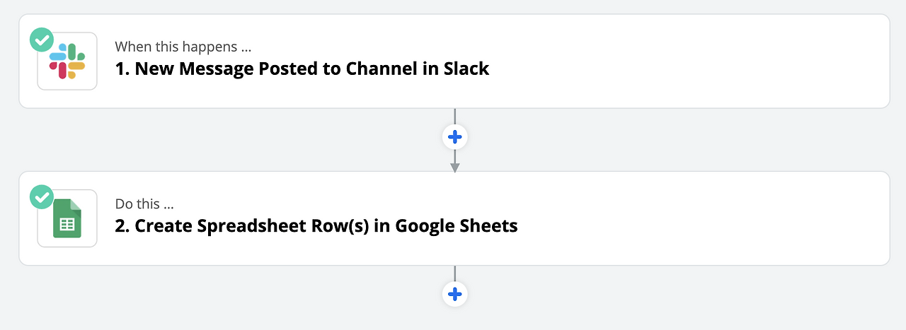 간단한 설정을 마치니, 지정된 슬랙 채널에 새로운 메시지가 올라올 때마다 선택한 시트에 메시지가 자동입력됐다. (꿈인가?)