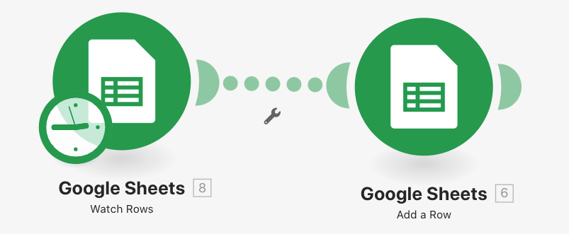 현재는 매일 아침 8시 30분에 한 번씩 임시 시트를 확인Watch Rows하고, 새로운 데이터를 백업 시트에 입력Add a Row한다. (integromat 사용량도 줄일 겸...)