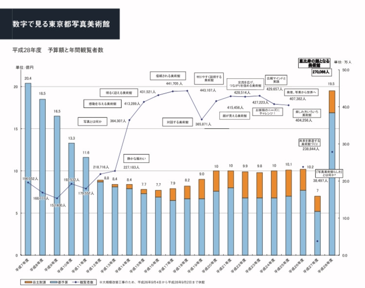 여기까지 적고 나니 자연스럽게 “여기, 괜찮은거야?”라는 생각이 든다. 결론부터 말하면 괜찮다. 도쿄도에서 운영하는 공립미술관이기 때문이다. 좀 예전 자료이긴 하지만, 2016년 기준으로 한 해 예산이 45억엔 정도였는데, 그 중 관람료 등의 수익으로 자체 조달한 부분은 얼마 안 되고, 대부분이 도쿄도 예산으로 운영되고 있다고 한다.