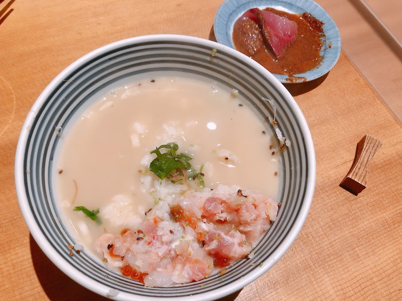 이 집이 유독 외국인 관광객에게 인기를 얻는 이유는, 한 그릇의 음식으로 두 가지 경험을 동시에 할 수 있게 해주어서가 아닐까 싶다. 밥을 반 이상 먹고 나서 "도미육수 주세요"라고 청하면 밥 위에 뽀얀 생선육수를 부어준다. 밥 위에 따뜻한 국물을 붓는다는 것만으로 순식간에 카이센동에서 오챠즈케(お茶漬け)라고 하는 전혀 다른 카테고리의 음식으로 식경험이 바뀌게 된다.