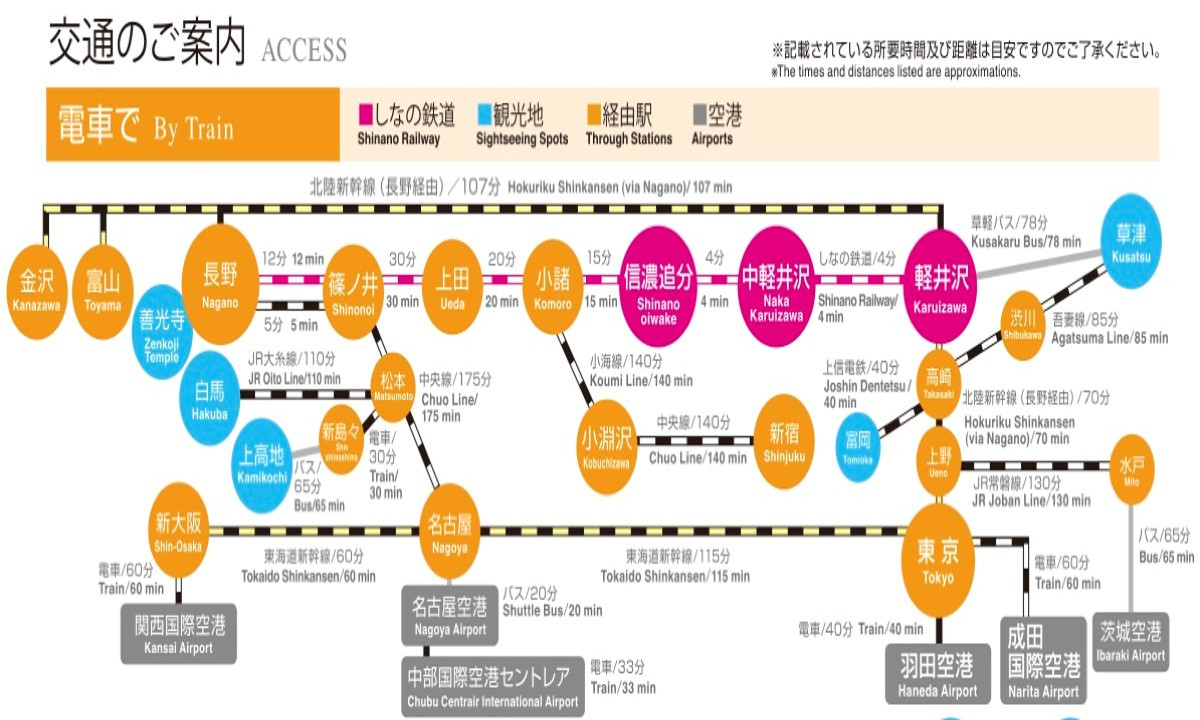가루이자와는 도쿄역에서 호쿠리쿠 신칸센(北陸新幹線)을 타고 1시간10분 거리에 위치해 있다. 과장을 조금 덧붙이면 소요시간만으로는 도쿄에서 요코하마 다녀오는거나 큰 차이가 없다. (물론 비용 측면에서는 큰 차이가 있지만 말이다.)
