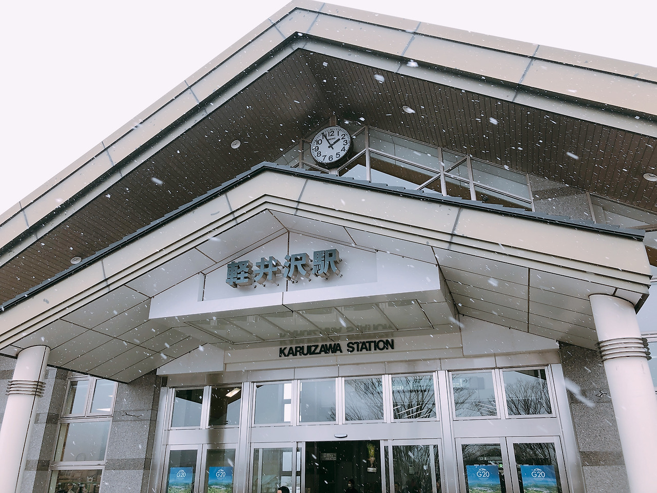 줄곧 날씨가 좋다가 돌아가는 날 싸락눈이 내렸다. 짧은 순간을 놓치지 않고 눈 내리는 가루이자와역 인증샷을 찍었다.