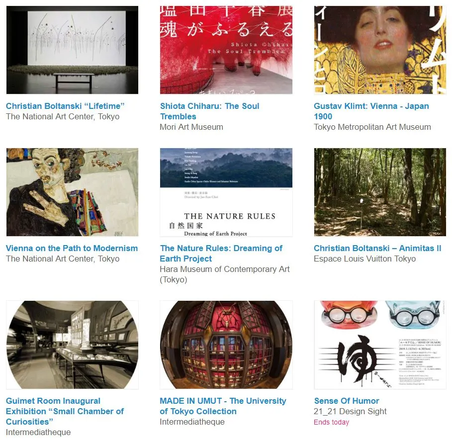 도쿄에서 지금 무슨 전시를 하고있는지 한 눈에 확인하고 싶을 때 필자가 이용하는 사이트가 있다. Tokyo Art Beat다. 웹페이지로도 볼 수 있고, 어플리케이션 버전도 있어서 핸드폰에 다운받아둬도 좋다.