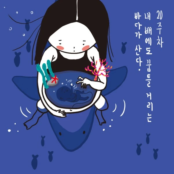 하루하루가 지나면서 그 미세한 운동은 규칙적으로 느껴졌다. 아침 7시와 저녁 10시를 전후에 배에 경련이 난것 처럼 울컥울컥 거리며 그 움직임은 커졌다. 꼭 바보 물고기 한 마리가 자신이 어항 안에 있는 줄도 모르고, 자꾸만 밖으로 헤엄쳐 나가려다 부딪히는 느낌? (미안 아가야)