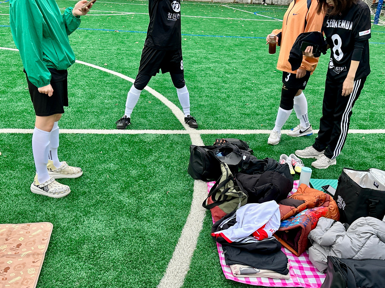 어느 겨울, 12월이었다. 우리 팀을 포함하여 총 4팀이 참석했던 그 경기에는 참석 전부터 코치님이 "배울 것이 많은 팀이니 즐겁게 다치지 말고 경기하고 오면 좋겠다."고 말하셨다. 이 말을 해석하면 우리와 실력 차이가 깨나 날 수 있으니, 이기는 것보다는 즐기다 오라는 말과 같았다. 꽤 추운 날씨였지만 여느 때처럼 구장에 도착해 꺄르르 농담을 주고 받으며 경기를 준비했다. 돌아보면 2년이 가까운 시간 동안 우리팀이 지향하는 바는 승리보다는 안전이었다.(물론 조금씩 승리를 향해가고 있기도 하나..) 늘 우리는 경기 전 ‘다치지 말고 즐기자’라는 다짐을 서로에게 불어 넣는다. 그 날도 역시 그렇게 서로를 다독였다.