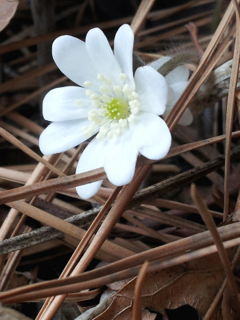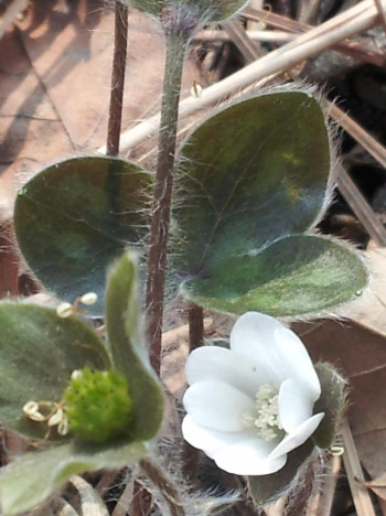 꽃이 먼저 피고 올라 온 줄기에는 보송보송한 솜털이 자라는 꽃. 노루귀라는 이름은 꽃이 지고 난 다음 자라나는 잎이, 아직 어려서 솜털이 가득한 어린 노루의 귀를 닮았기 때문에 붙여진 이름이다. 이른 초봄 다른 풀들이 자라나기도 전에 일찍 피고, 아주 작아서 자세히 보지 않으면 사람들은 그 꽃이 피어 있는지 조차도 모른다. 추위 속에 처음 피어난 그 꽃을 본 누군가가 따갈 것만 같아서 나는 슬그머니 마른 참나무 잎으로 조심스레 그들을 감추어 준다.