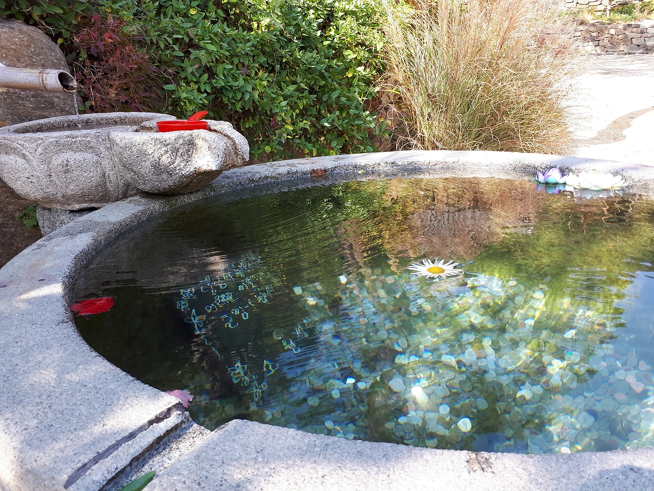 작은 샘가, 물속에 핀 꽃그림자