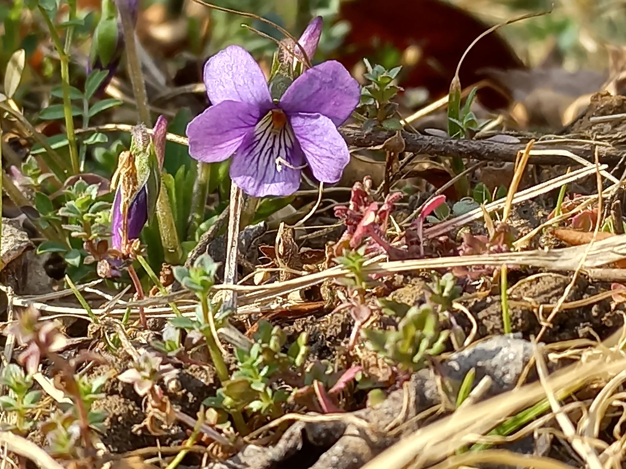 두 종류의 제비꽃 (땅에 아주 가깝게 피었다)