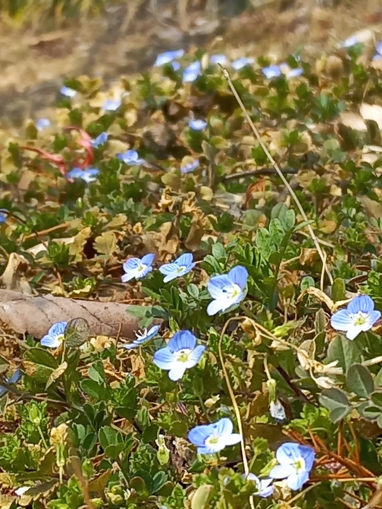 따스한 양지 녘에서파아란 미니 꽃밭을 만났다. 봄까치 꽃밭이다.