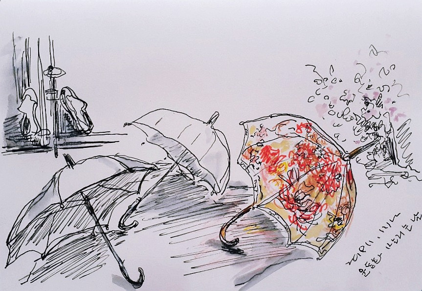 월요일엔 쉬엄쉬엄 하루를 시작하고 싶고 남은 요일이 한참이니 느긋해진다. 벌써부터 고양이가 밥 먹으러 와서 마루 창문에 코 박고 있다. 생선을 데워서 먹기 좋게 잘라놓으니 한참을 또 식히고 앉았다. 어쩌다 내 아침밥보다 고양이 밥부터 챙긴다. 공기 질이 좋지 않지만 볕이 좋아서 아이의 운동화를 빨았다. 칫솔로 문지르며 하필 하얀 운동화를 샀는지 투덜댄다. 볕 잘 드는 대문에 운동화를 기대 놓고 볕이 아까워서 비 온 날 덜 마른 우산 세 개도 펼쳐놓았다. 미뤘던 빨래를 세탁기에 넣고서야 아침 먹을 생각을 한다. 에스프레소 커피를 만들고 도넛 하나, 식빵 한 조각, 바나나까지 동그란 쟁반에 챙겨서 노트북 앞에 앉았다. '당신이 만든 날씨' 원곡을 찾아서 듣는다. 자판만 누르면 다 나오는 세상이 내 앞 탁자에 있다니! 이런 세상을 사는 나. 지난 세월 모조리 흑백 사진첩으로 들어가 버린 느낌이다. 이만큼에 감격스럽다.