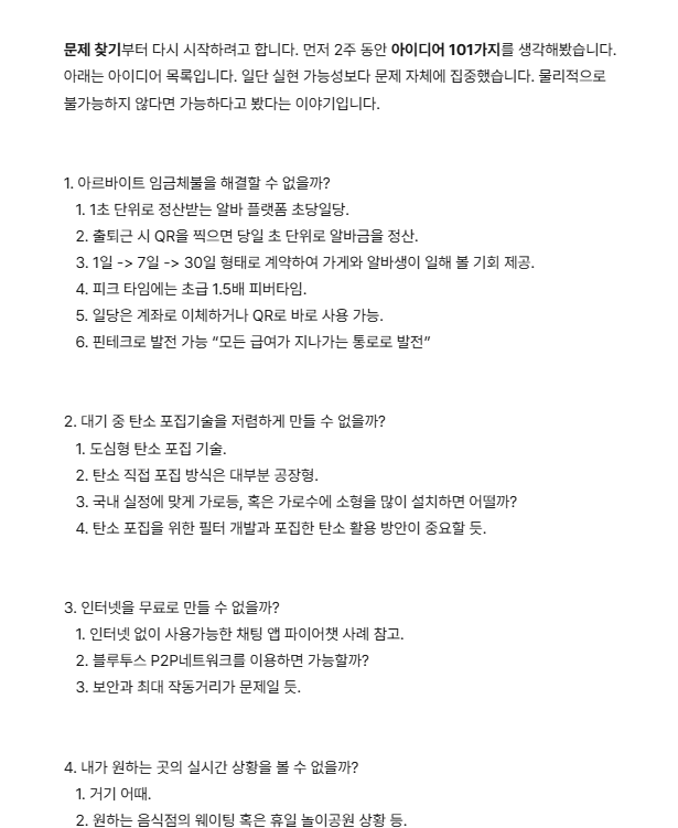 사업 개발자(DB) 부트캠프 커리큘럼 중, 흥미로운 아티클을 추천받았다. 바로「사업 아이디어 101」이다. 저자는 무려 101개의 비즈니스 아이디어를 공개적으로 공유했고 포부를 밝히며 함께할 사람들을 모집했다. 아이디어가 무려 101개? 그리고 그걸 공개적으로 공유하며, 팀원을 모집하는 방법이 있다고?