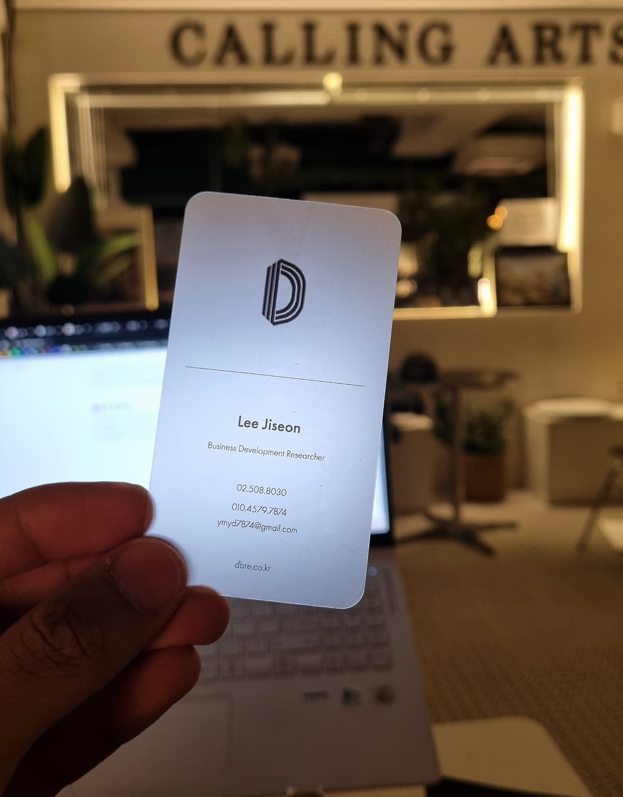 짜잔! dbre의 꽤 명함은 독특하다. 불투명한 재질로 감각적이기도 하고 받은 사람에게 독특한 인상을 줄 것만 같다. dbre는 design과 Libre(자유)의 합성어로, 디자인을 통해 고객이 더 자유에 가까워질 수 있게 돕는 역할을 해 나갈 것이다.