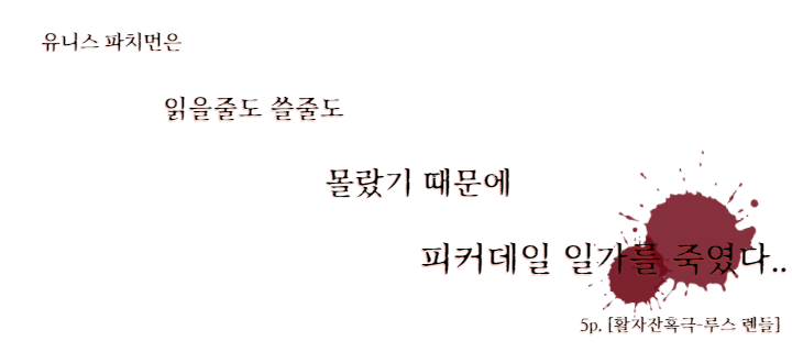 부족하지만 이 글을 통해 『활자 잔혹극』에 관심이 생겼다면, 당신을 환대로 맞이할 도서관으로 달려가 보기를 권합니다.